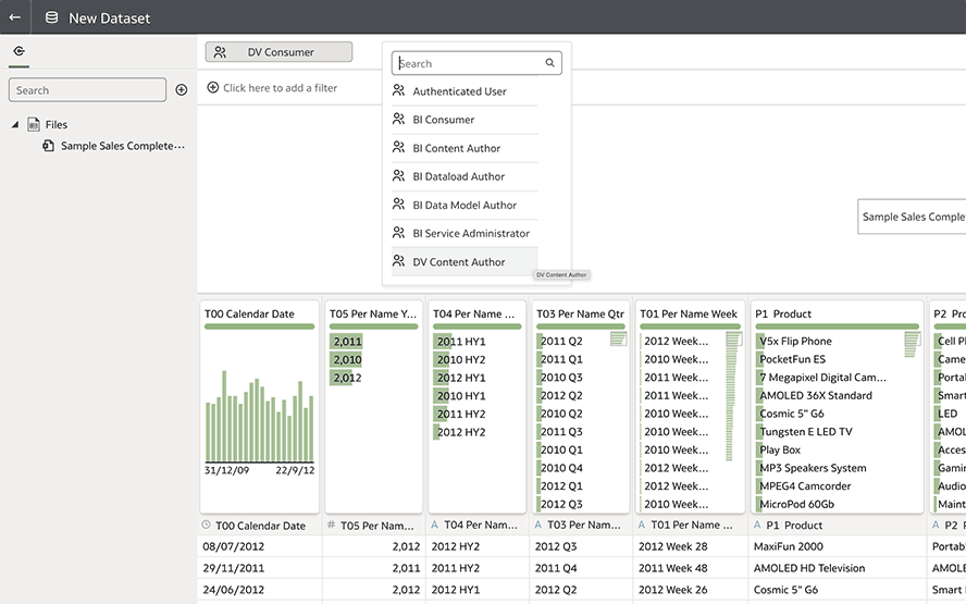 Oracle Analytics provides role-based security. Role-based security can be specified at the user, group, and role level. Use existing roles, such as DV Content Author and BI Service Administrator, or create custom organizational roles.