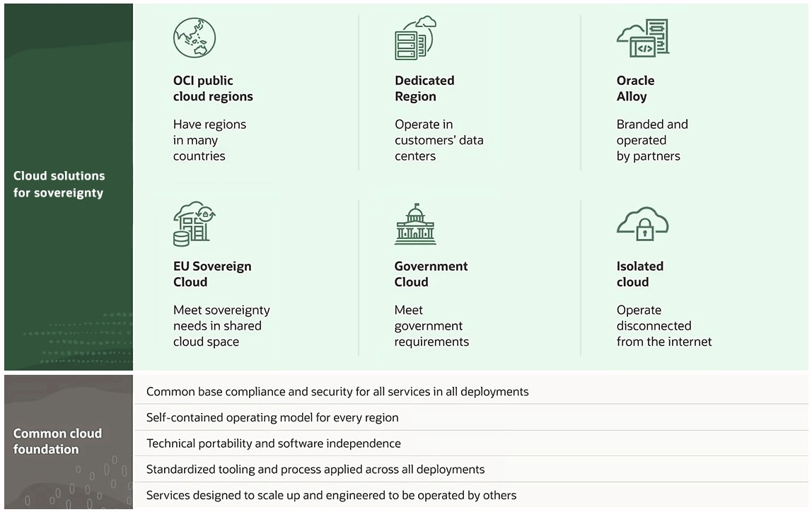 OCI delivers its AI capabilities with more than 100 cloud services deployed in the public cloud or in a customer’s data center. OCI’s distributed cloud offers a range of deployment models, including OCI Dedicated Region, Oracle Alloy, Oracle EU Sovereign Cloud, and Oracle Government Cloud.