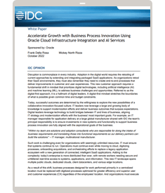 As part of the growing sophistication and practical applications of AI technologies, intelligent automation is poised to become a powerful competitive advantage. The time to get started is now. When you do, you’ll want a partner with a proven track record in enterprise integration and business process automation. Oracle has been helping businesses automate work processes for decades and has built that expertise into Oracle Cloud Infrastructure (OCI) services. You will find OCI integration services that connect applications and data sources to help you automate processes and centralize management. The service enables event-driven workflows to automate and accelerate approvals. OCI also offers cloud-based AI services trained to specific workloads, such as natural language processing, anomaly detection, and computer vision, which companies can apply as needed.