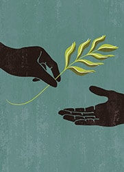 In the fourth use case, there are three virtual cloud networks. The first and third virtual cloud networks are both logically connected to the second virtual cloud network. The first and third virtual cloud networks have resources, shown here as virtual machines.