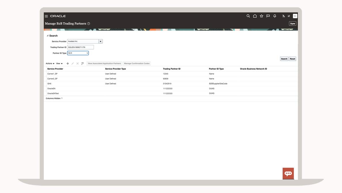 为了简化跨多个网络的数百个合作伙伴的登记流程,该应用还允许您将消息传送到 Oracle Integration Cloud、Oracle Business Network 以及多个经过认证的第三方 B2B 服务提供商。