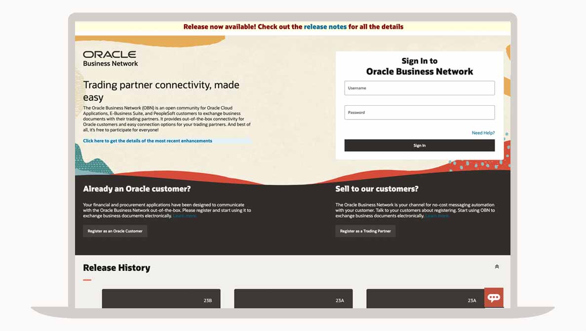 您可以实施零成本、预构建和预集成,并且适用于整个 Oracle Cloud ERP 和 SCM 产品套件的 B2B 解决方案,告别传统 B2B 解决方案中漫长且成本高昂的实施周期,开始扩展您的互联业务生态系统。
