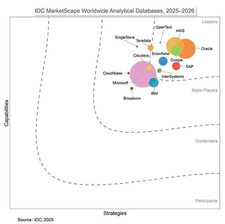 Discover how Oracle Autonomous AI Database helps customers quickly search, explore, and analyze their data with AI-powered analytics. This IDC MarketScape report shows how next-generation database architecture, interoperability, and AI readiness are redefining the analytical database market and spotlighting the platforms best equipped to deliver agility, scalability, and long-term value.