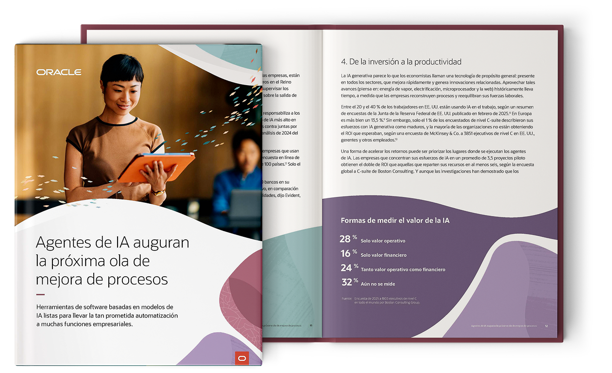 Los agentes de IA, una nueva capa de lógica empresarial de aplicaciones para transacciones y consultas, están diseñados para ayudar a las empresas a reinventar sus procesos de front-office y back-office. En este ebook se exponen las principales aplicaciones, los beneficios potenciales y los desafíos de los agentes de IA.