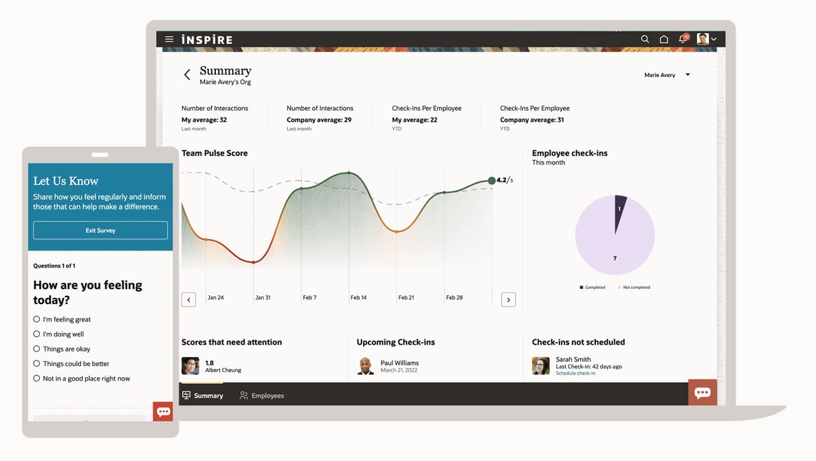 Empower managers to continuously survey and track employee sentiment and take suggested actions –scheduling check-ins, providing feedback, or praising work.