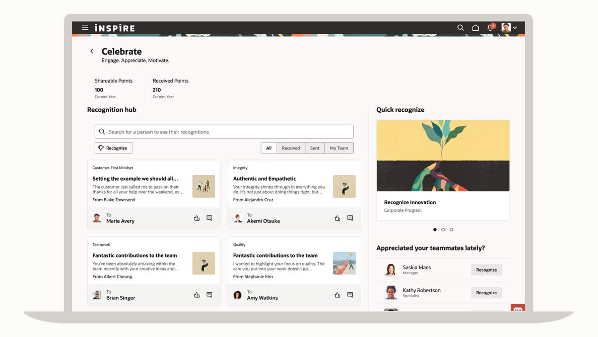 Enable peer-to-peer recognition and rewards to help employees feel valued for their contributions, improve engagement, and drive cultural values.