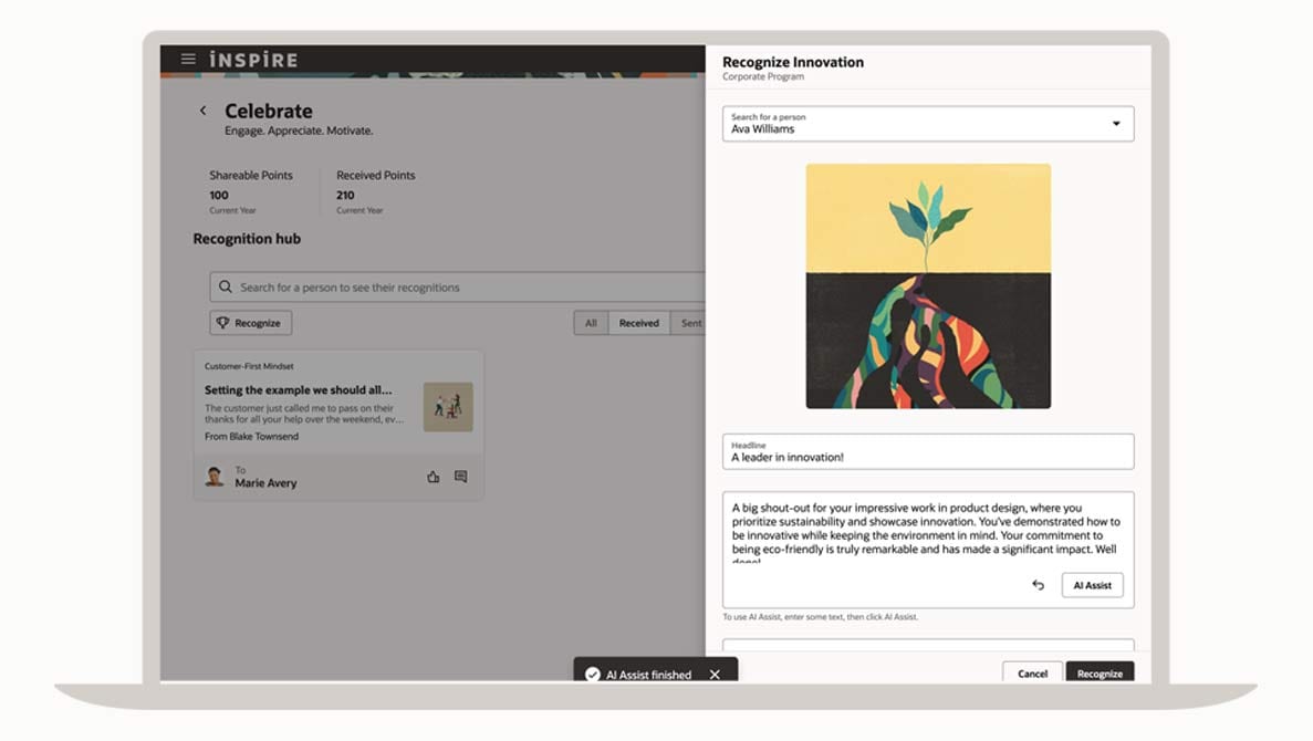Drive more peer-to-peer recognition and rewards with prebuilt templates and generative AI messaging assistance and by embedding peer recognition into an individual’s daily routine—for example, by recognizing coworkers in the moment on Slack or in weekly pulse surveys.