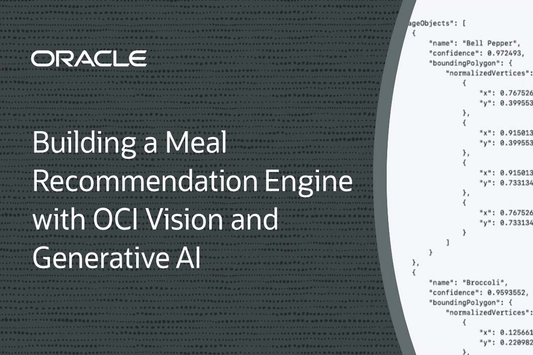 Hai mai guardato nella tua dispensa o in frigorifero e ti sei reso conto di non sapere cosa fare con gli ingredienti che hai? Utilizzando Oracle Cloud Infrastructure (OCI) Generative AI e OCI Vision, possiamo creare un motore di raccomandazione per i pasti che cataloga i nostri ingredienti e fornisce consigli su quali pasti sarebbero possibili.