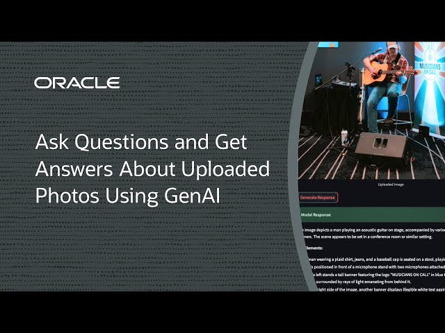 Questa soluzione ti mostrerà come creare un'app di base image-to-text che consenta agli utenti di caricare un'immagine, immettere un prompt in linguaggio naturale che descriva una query sull'immagine e ricevere una risposta basata sul testo generata dal modello AI. Utilizzando una semplice interfaccia creata con Streamlit, un decodificatore di immagini base64 e sfruttando l'API di inferenza AI generativa di Oracle Cloud Infrastructure (OCI) per l'elaborazione di dati multimodali (testi e immagini), è facile da mettere insieme e funge da punto di accesso ideale per provare i servizi AI su OCI.