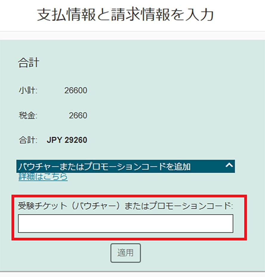 ※お支払いに受験チケットをご利用の場合、試験予約時にクレジットカード番号のご入力は不要です。クレジットカード番号欄にはご入力されないようご注意ください。