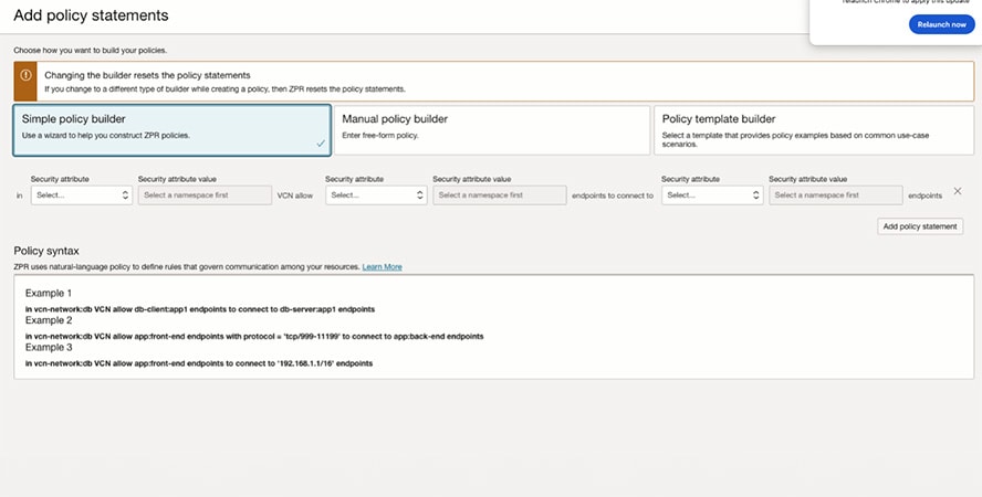 To create OCI ZPR policy, select “Policies” from the left-hand ZPR menu, then click “Create policy.” The landing page lists the existing policies in your tenancy.