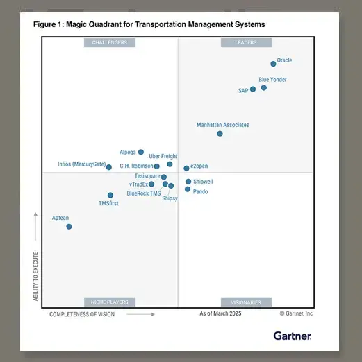 *Gartner® Magic Quadrant™ for Transportation Management Systems, Brock Johns, et al. 24 March 2025.