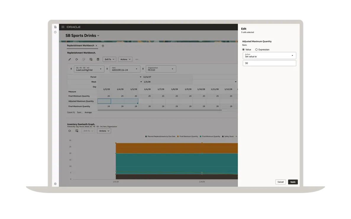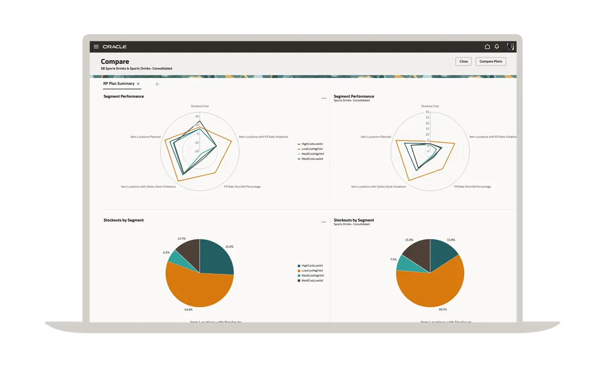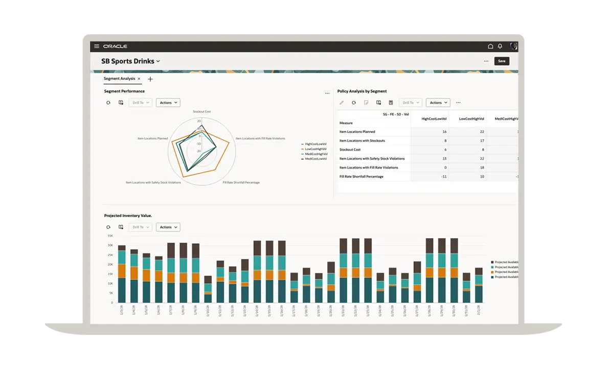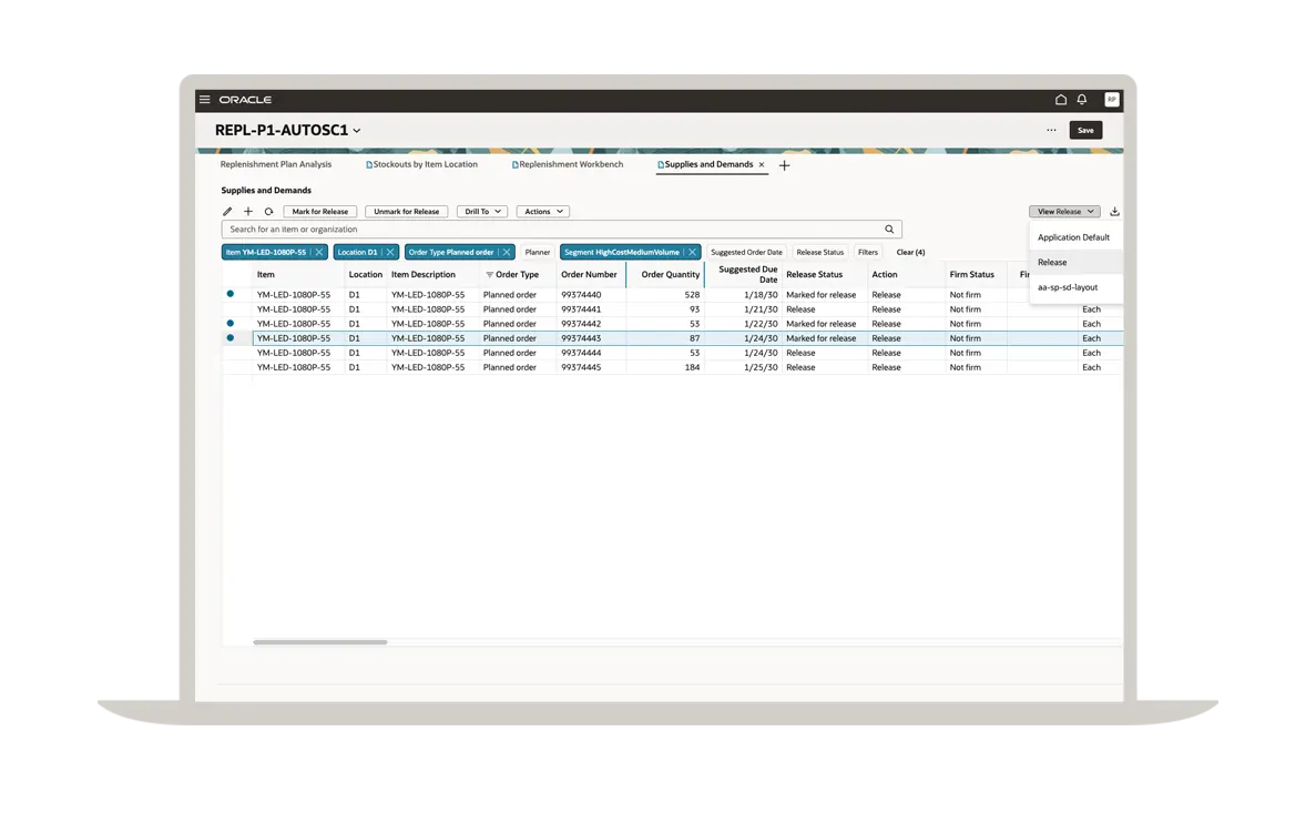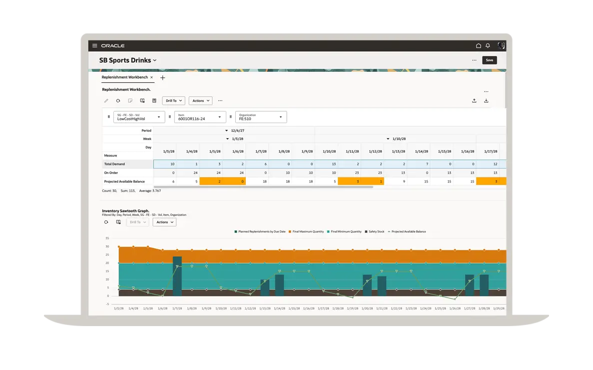 有效補貨計畫是從準確的需求預測開始。藉助 Oracle Demand Management,您可以獲得世界級需求規劃解決方案的功能,輕鬆管理新料號上市、低數量產品、季節性和一次性事件。您可以在這裡查看跨各種節段的出貨預測與出貨歷史記錄的比較。